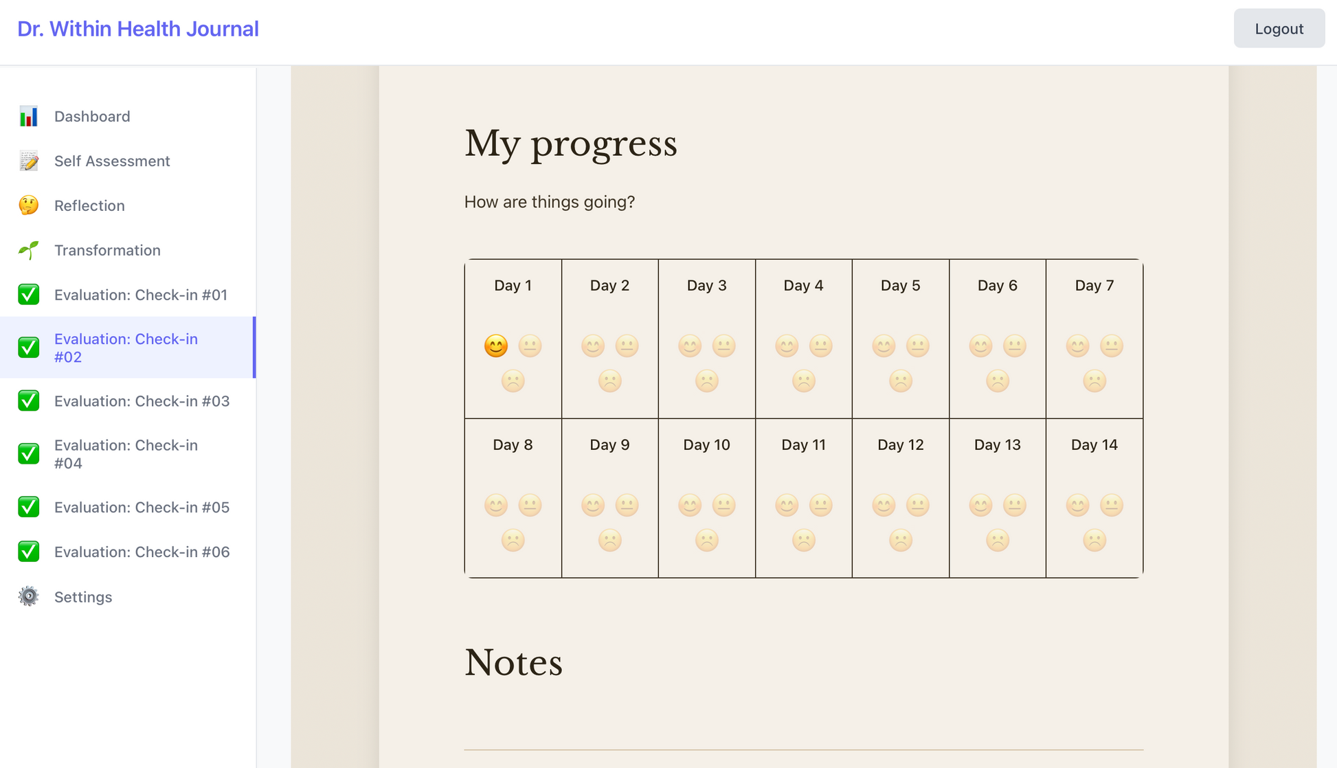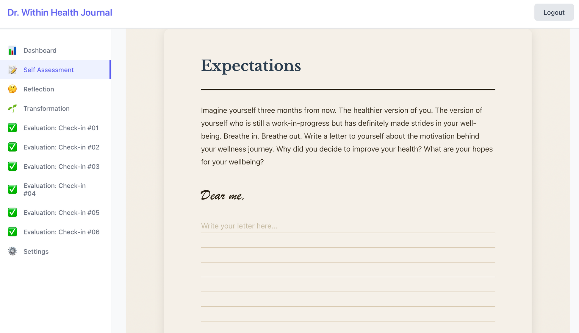 Prompts are focused on nutrition, sleep, exercise and stress management. Entries can be edited for 7 days before they are locked in.